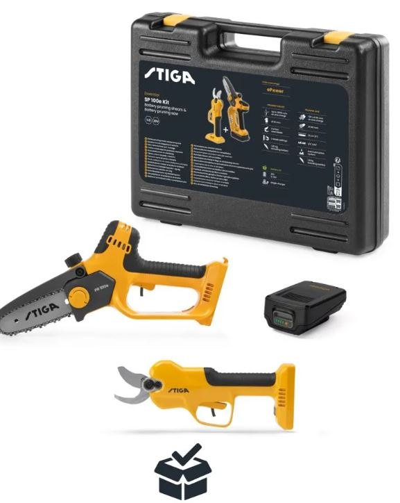 SP 100e Kit, která kombinuje sadu SC 100e a sadu PR 100e, je ideální volbou pro ty, kteří hledají kompletní řešení pro všechny své potřeby při prořezávání. Lehké a praktické nůžky SC 100e Kit jsou ideální pro přesné a čisté stříhání, které vám usnadní práci. Akumulátorová prořezávací pila PR 100e Kit si zase poradí s větvemi o průměru až 50 mm a díky integrovanému olejovému čerpadlu pro průběžné mazání zvládne hladké a přesné řezy. Součástí sady je 20V akumulátor ePower, který lze použít v obou výrobcích, takže snadno zvládnete různé prořezávací práce, od nejtenčích větví až po středně silné větve. S prodlužovací tyčí PR 100e (prodává se samostatně) navíc umožňuje dosáhnout výšky až 1,8 m, což usnadňuje a zvyšuje bezpečnost údržby zahrady.