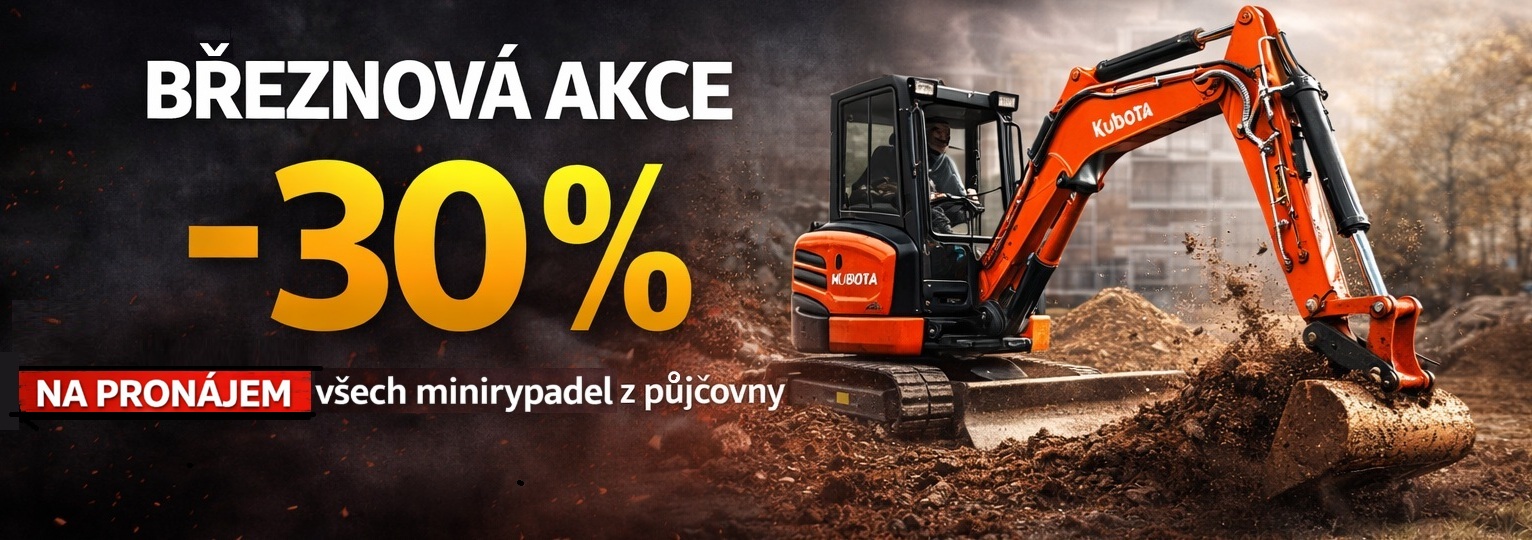 • ✅ Sleva –30 % se vztahuje na pronájem všech minirypadel z půjčovny