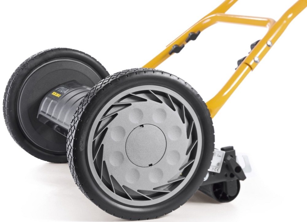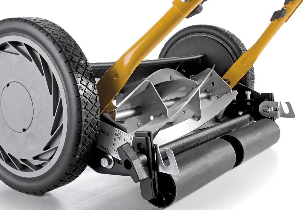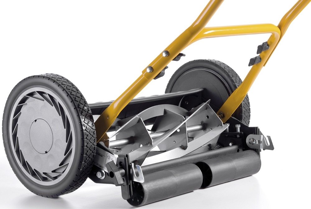 Ideální pomocník pro menší zahrady nebo nově založené trávníky. Trávu neseká, ale seřezává mezi dvěma ostřími. Pracovní záběr je 40 cm, 5-ti nožové vřeteno, 3 výšky sečení 25-60 mm, hmotnost 10,5 kg, objem koše 18 l. Lze ji doplnit přídavným sběracím košem (Není součástí balení)
