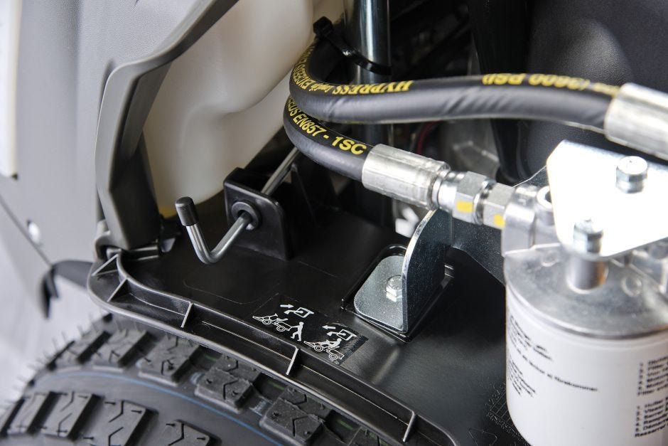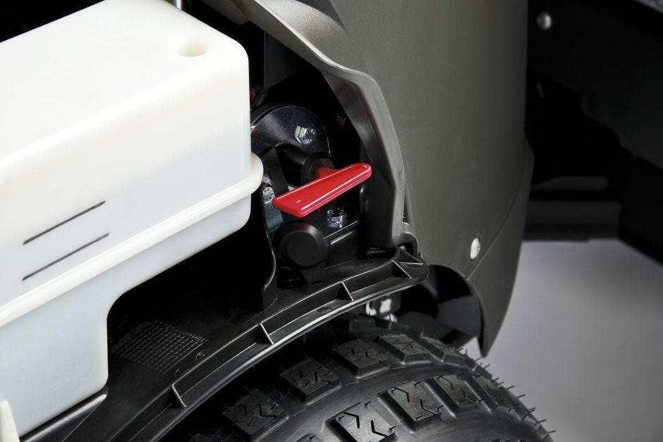Pedálem ovládaný hydrostatický pohon dále přispívá k ovladatelnosti plynulým zrychlováním a zpomalováním bez nutnosti ručního řazení, zatímco díky pohonu 4WD lze bez problémů překonávat svahy, nerovnosti a blátivý terén.