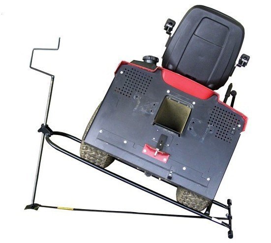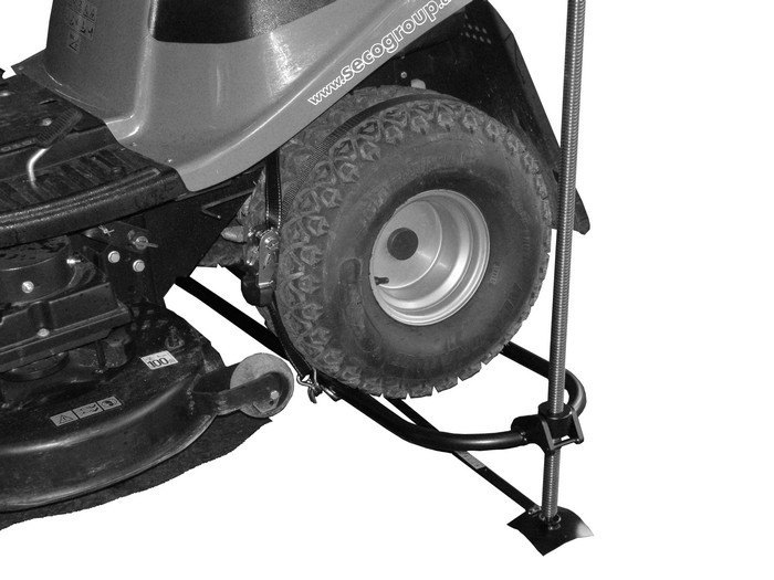 Tímto typem zvedáku se zahradní traktor nakloní na stranu. Zdvihání zajišťuje vysokopevnostní šroub a matice. Místo kliky lze použít utahovačku, popřípadě akuvrtačku. Boční strana traktoru je vyzdvižena do výše 75 cm.