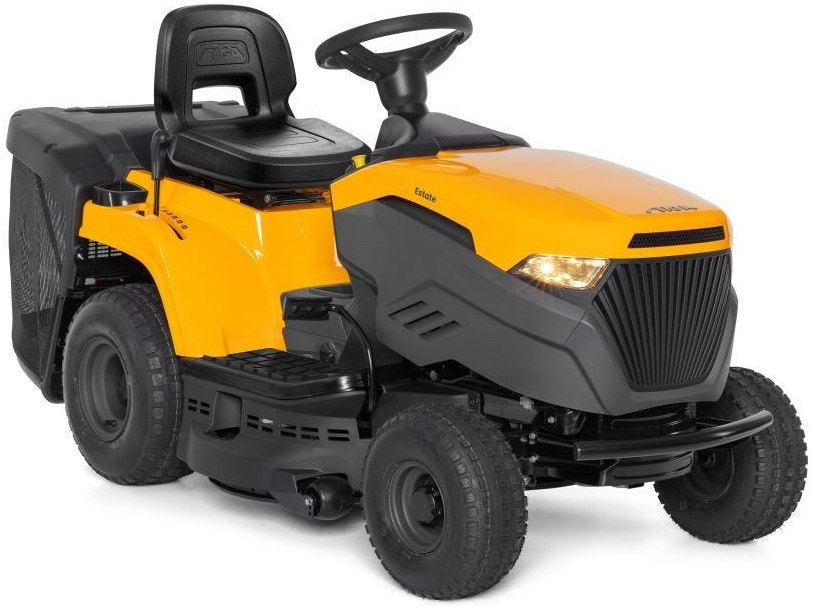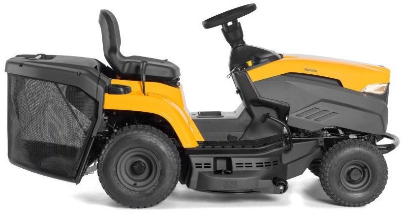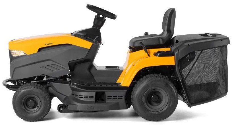 Zahradní traktor s motorem ST 350 Powered by STIGA o objemu 352 cm³ s žacím ústrojím o šířce 84 cm se dvěma noži a zadním sběrným košem na trávu o objemu 200 l.