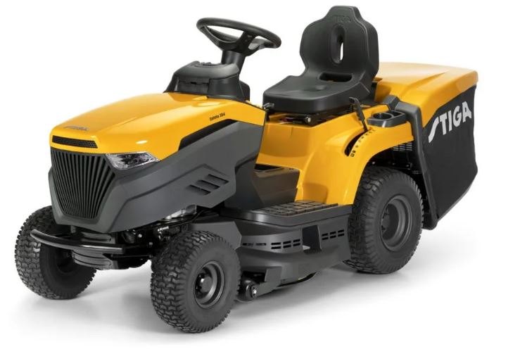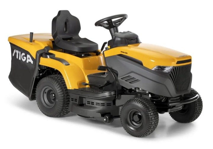 STIGA Estate 384 je vybavena benzínovým motorem STIGA se jmenovitým výkonem 6,8 kW při 2 400 ot/min. Stroj je vybaven hydrostatickou převodovkou ovládanou pedálem, která umožňuje měnit rychlost jízdy bez nutnosti změny převodu. Žací ústrojí o šířce 84 cm má dva nože a 7 poloh nastavení výšky střihu od 25 do 80 mm. Dále je vybaven praktickým systémem elektromagnetické spojky nože, který je ovládán tlačítkem. Model Estate 384 využívá zadní sběrný koš na trávu o objemu 240 litrů a umožňuje také použití funkce STIGA Multiclip pro mulčování.