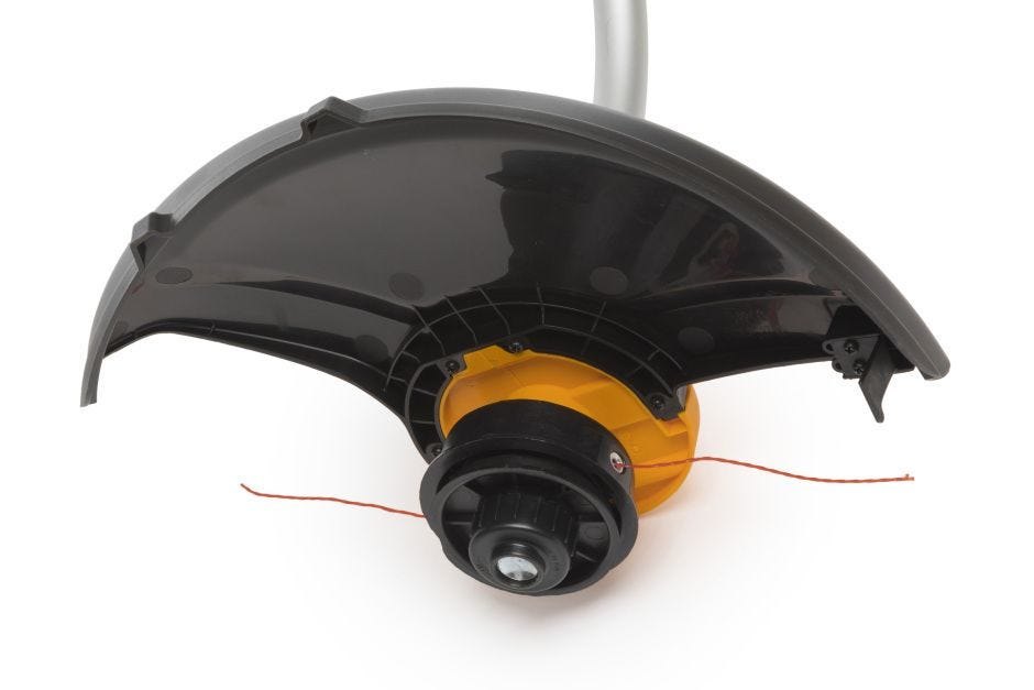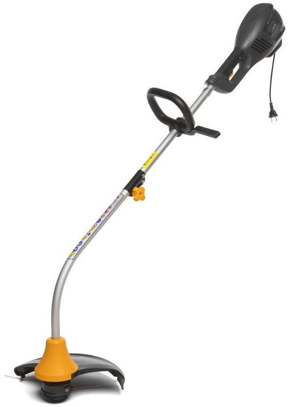 Elektrická strunová sekačka na trávu se spojenou kloubovou hřídelí, elektrickým motorem o příkonu 1000 W, šířkou záběru 37 cm, dvoustrunnou hlavou Tap & Go a jednou nastavitelnou rukojetí.